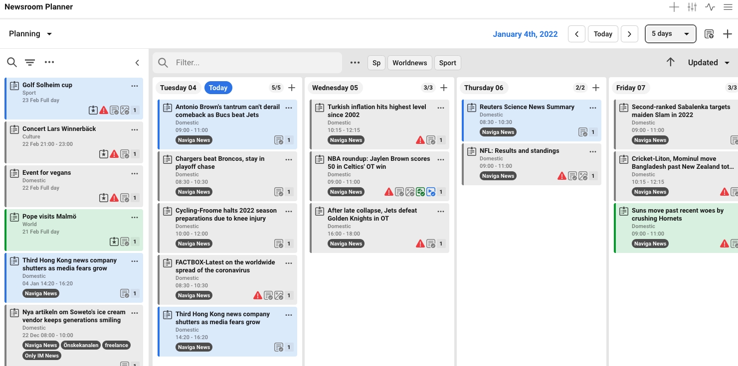 By using planning in Newsroom Planner you get a good overview of your planning. You can easily see which plans do not yet have any assignments for and take action on that.