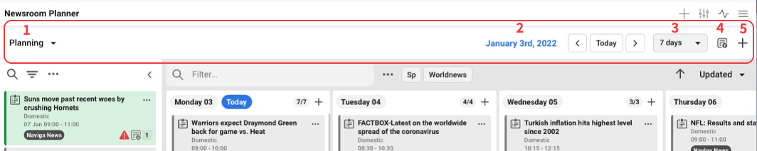 In the top menu you decide what you want to see in the view, for example plans for a certain date.