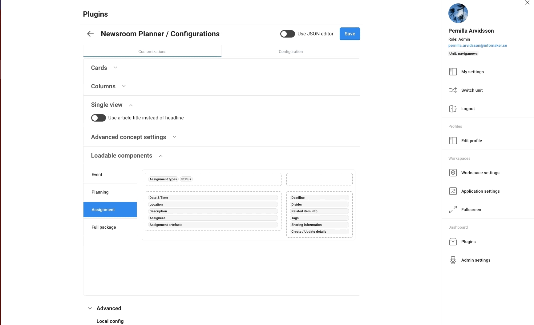 You can choose to make a setting in Newsroom Planner so you only see your own assignment. This view is called My assignment. This setting is made in the application settings.