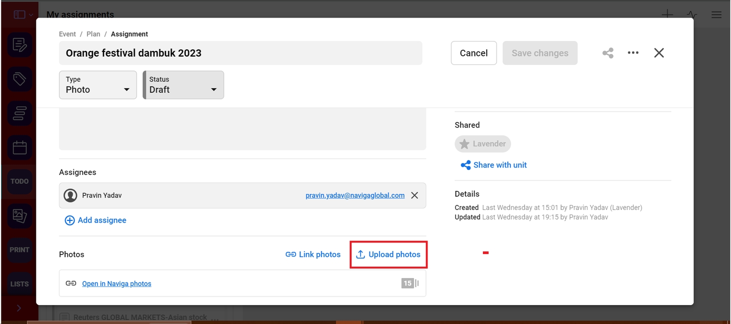 Upload photos to photo assignment
