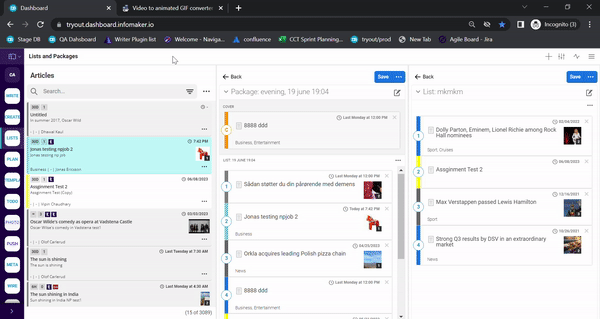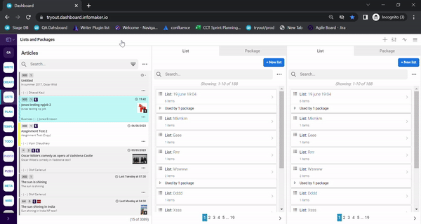 User can also copy the article present in one list to another list. This will create a copy of same article card present in one list and add it to another list. User need to press the key and drag the article icon.