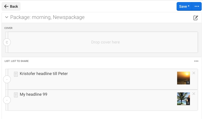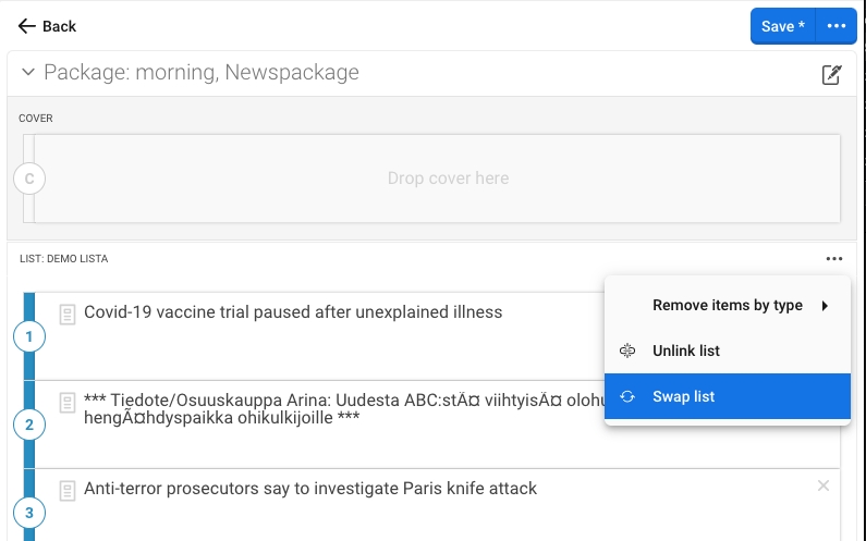 To swap out a linked list in a package, open the list menu and click on "swap list".