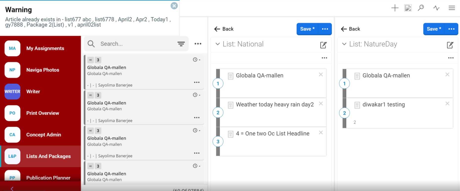 When a user drags & drops an article to a list and the article exists in that list then a warning message will show that would also tell in which list the article already exists.<br>