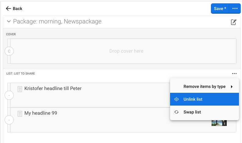 In order to unlink a list from a package, simply click the list menu and click on "unlink list"