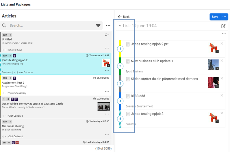 User can easily view the status of the articles present in the list by it color code. When user drag articles from article search and drop in the OC- list, the status of the article will be represented by color bar.