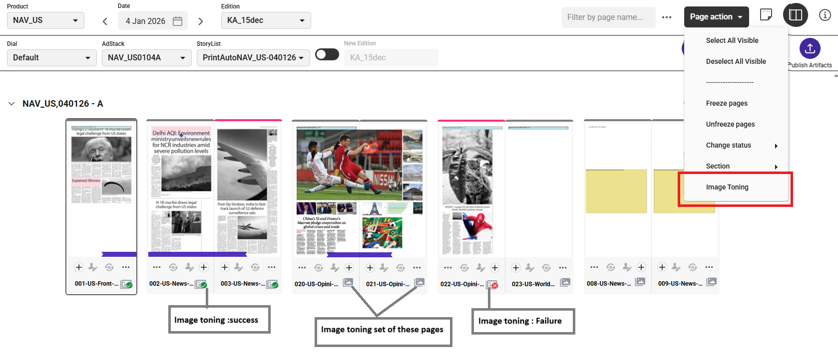 Pages will be frozen while the Image toning is in progress, however user can perform any other operations on other pages/editions.