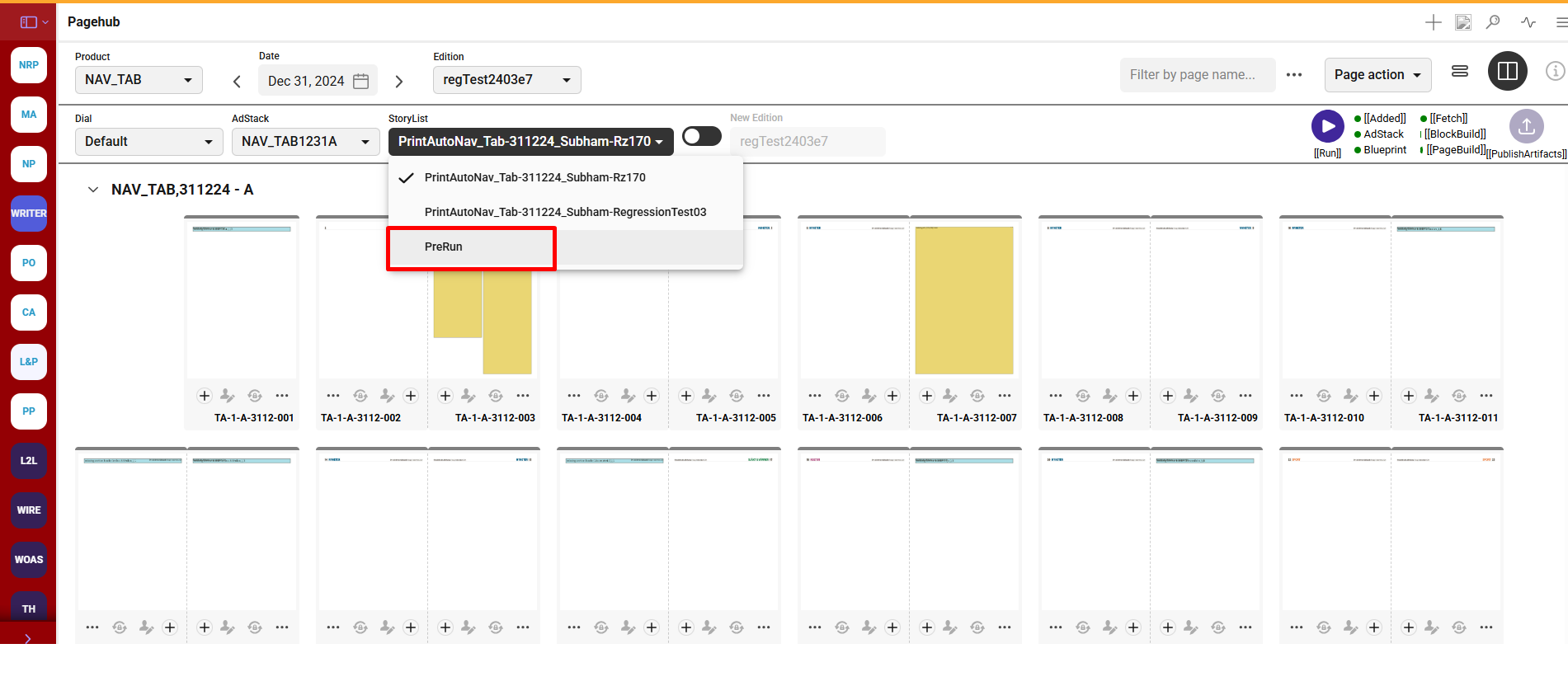 A blank story "PreRun" will always pe present in story list once user select any product and date , it will allow user to create pages on pagehub before even have an actual story list is created.