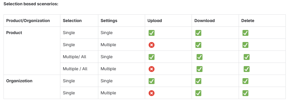 Multi-select capability has been enabled in the settings menu, letting users perform bulk actions across selected settings tied to a product or organization.