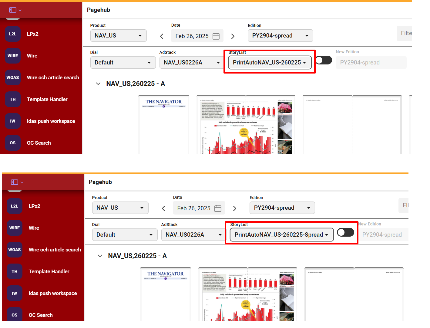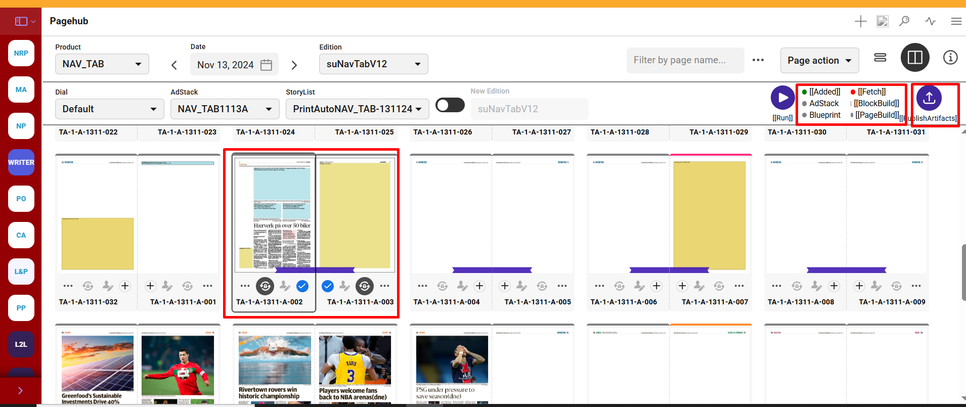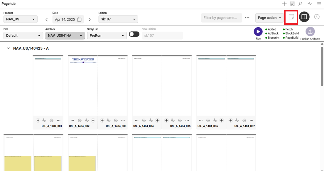 Product, Date, Edition, Disal, Adstack, Storylist - These details will be same as selected in the pagehub for run.
