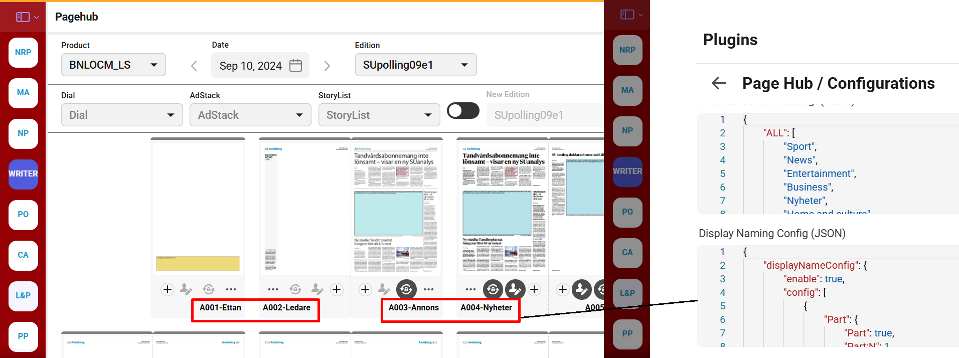 Jumps Visualization on Page Hub - In PageHub, an orange ribbon is used to visualize Jump documents by indicating both Jump start Page and the jump page. It also supports if a jump story needs to go to a double truck Pages.