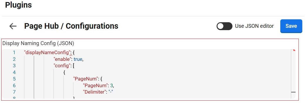 Important Points: 1. If Display Naming Config (JSON) in the Page hub Configuration is blank, default (Original page name) names will be displayed.