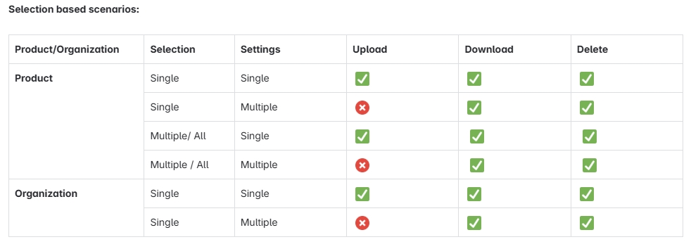 Multi-select capability has been enabled in the settings menu, letting users perform bulk actions across selected settings tied to a product or organization.