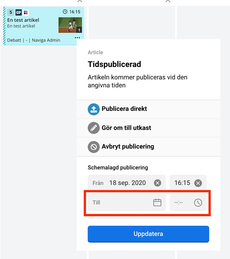 Don't forget to add start and stop time to config to make Scheduled publication show properly.