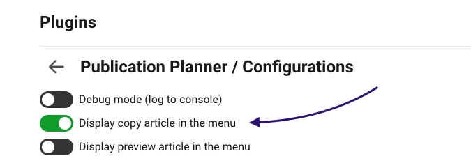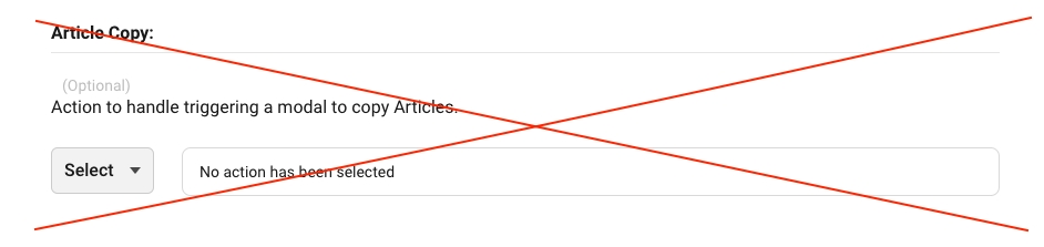 Before version 5.0.0 there was an optional copy article action. If this was bound, a copy article option was displayed in the menu of each card. Since the move towards the Writer instance action we removed the optional copy action and instead added a setting to display the copy article in menu (off by default).