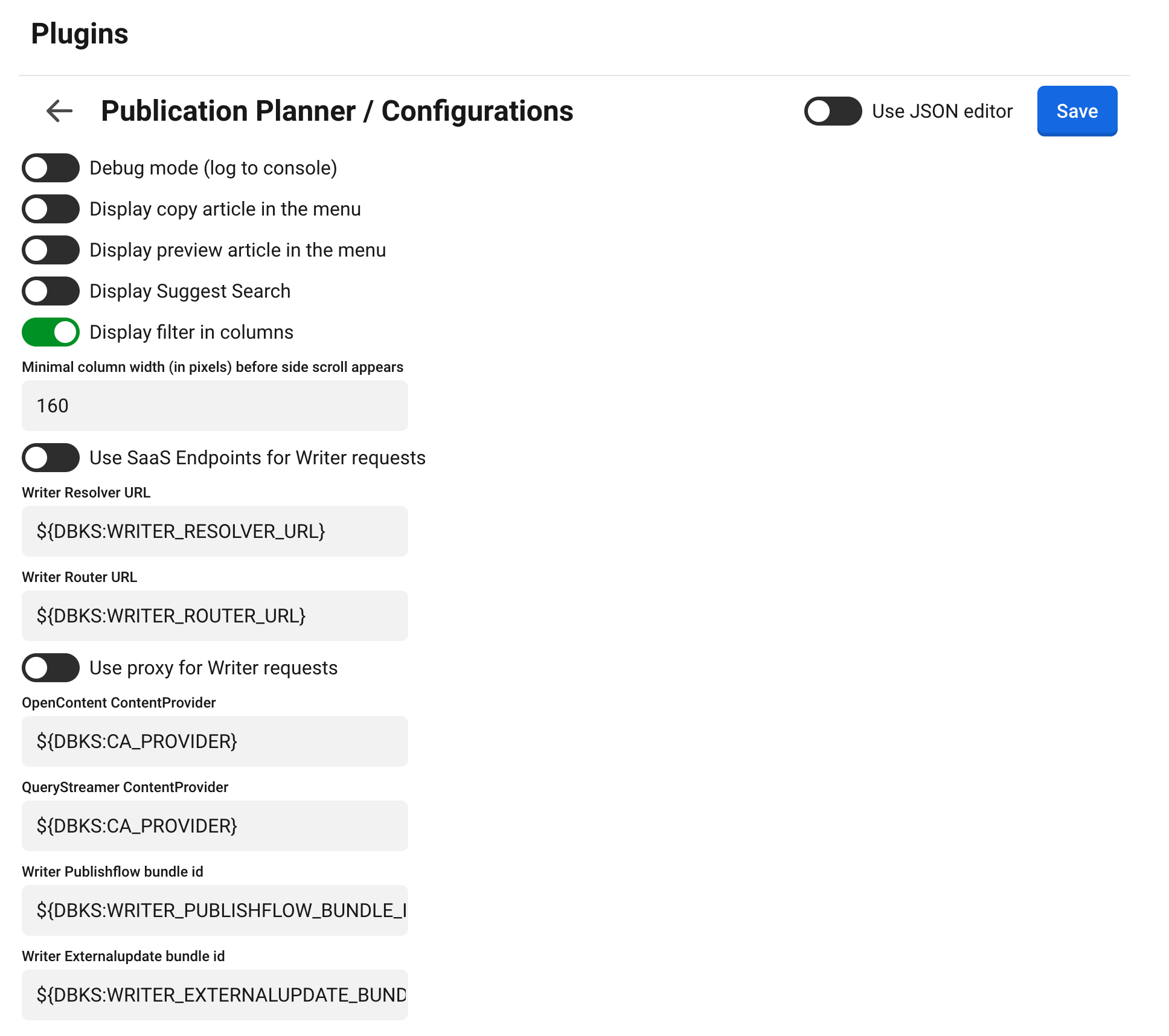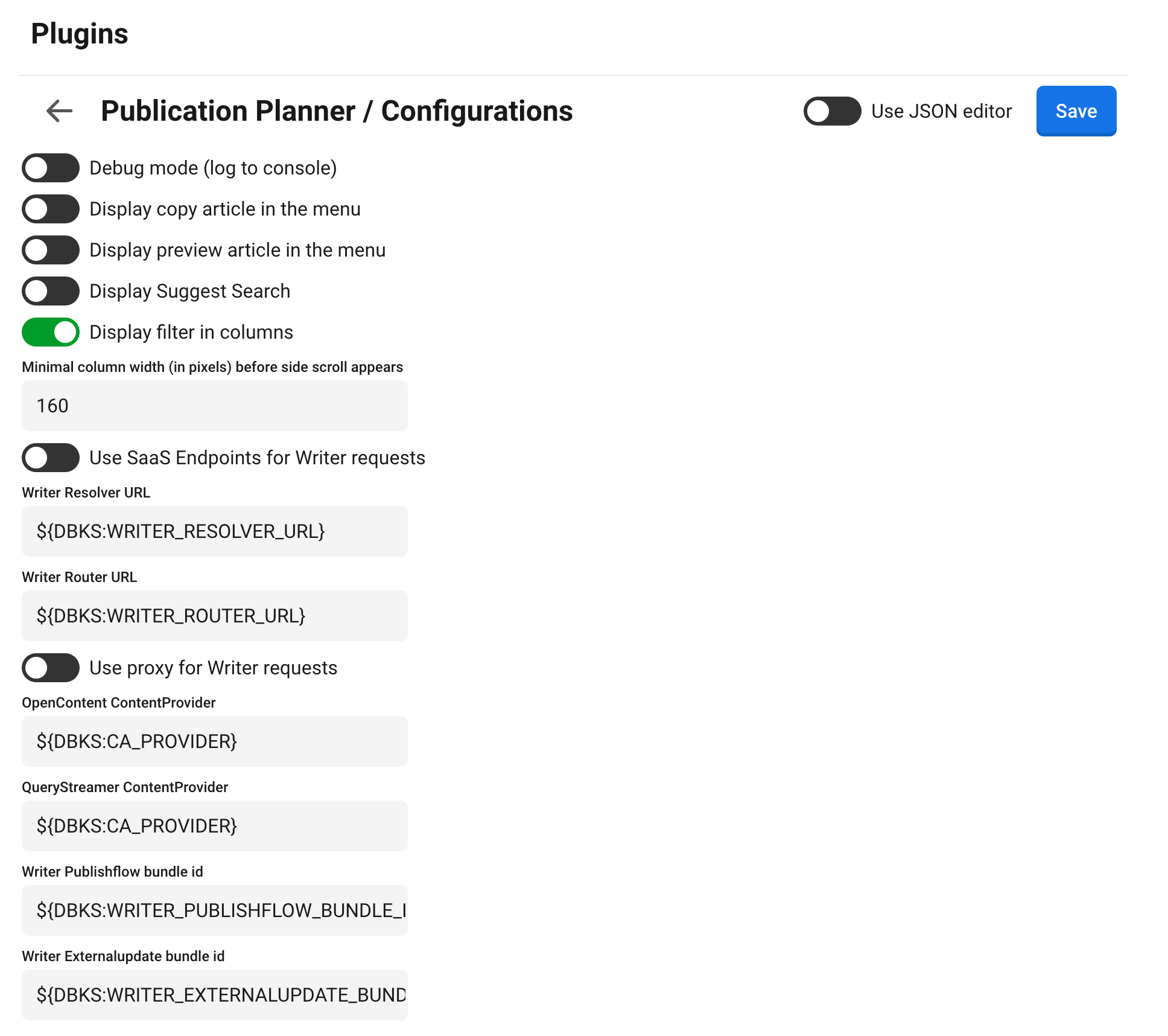 Publication Planner Config (JSON) - There are several things to check in the config and that you can choose to include in the set up. See the config guide for more help and a full json config example here. To configure several workspaces with different configurations see the example Week and Day view.