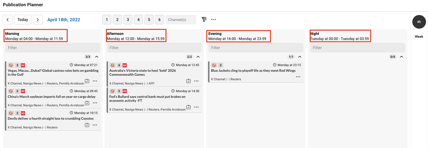 In the day view each slot present a special time of the day.