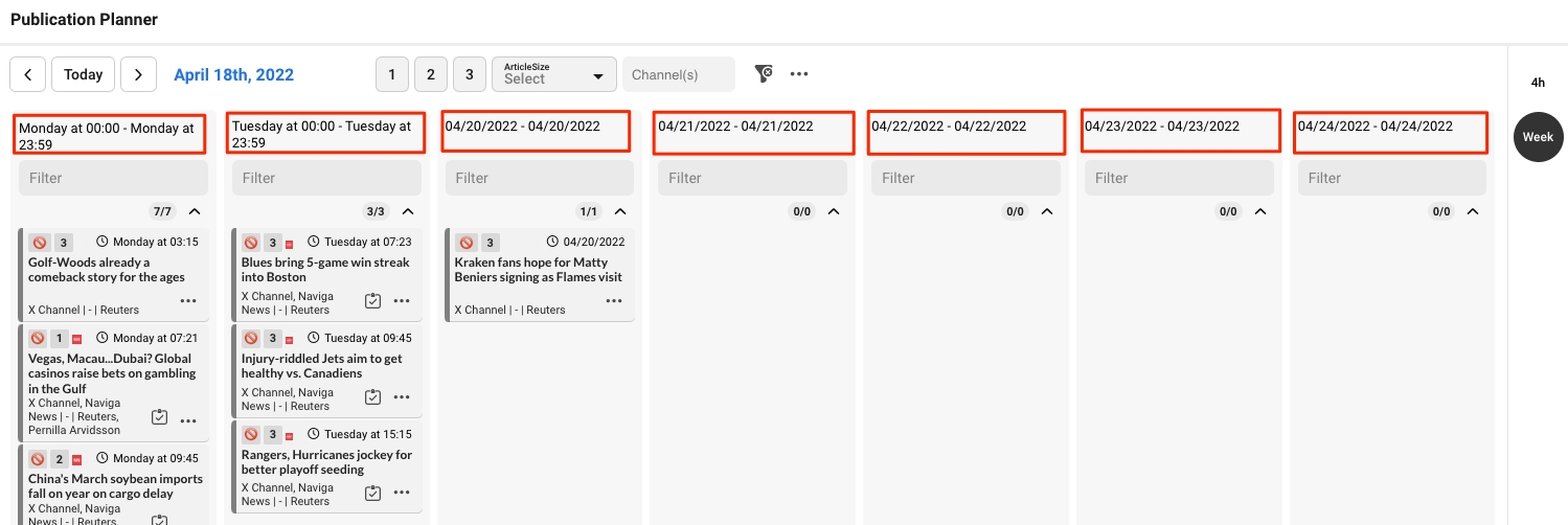 In the week view, each slot is one single day.