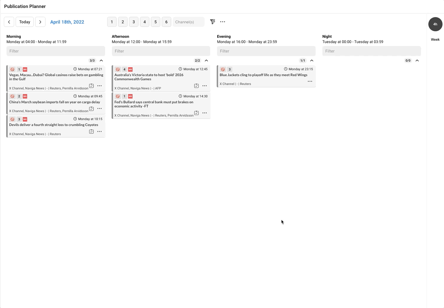 Default, if no admin has made any settings, you will see one sidebar item. It will be the day view. In this manual we have also added a week view as well. This makes it possible for you to easy change the view where the articles are presented.&#x20;