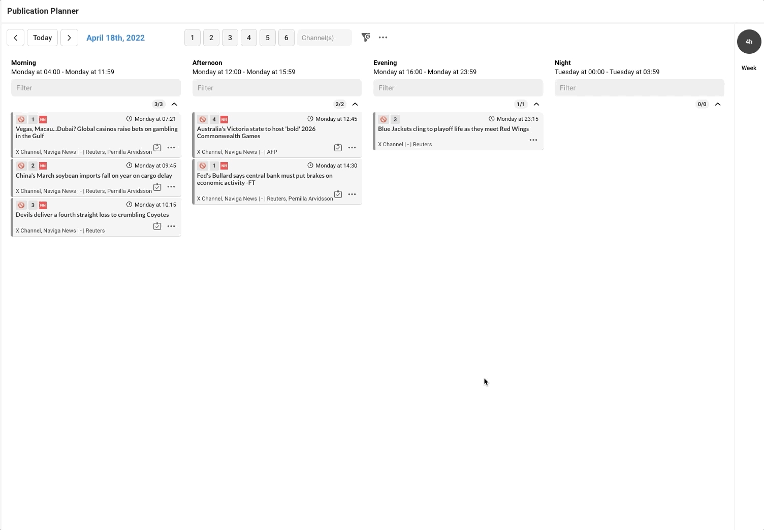 Default, if no admin has made any settings, you will see one sidebar item. It will be the day view. In this manual we have also added a week view as well. This makes it possible for you to easy change the view where the articles are presented.