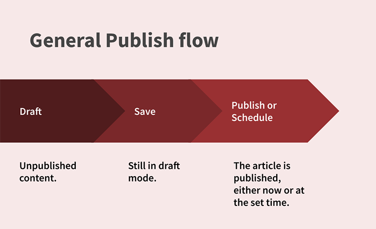 However it can also be so that the editor wants to wait with this article and decides to schedule the publishing instead. In that scenario the article is not published at first, but later when the time that is set occurs. This is a common very basic publish workflow described in common words.
