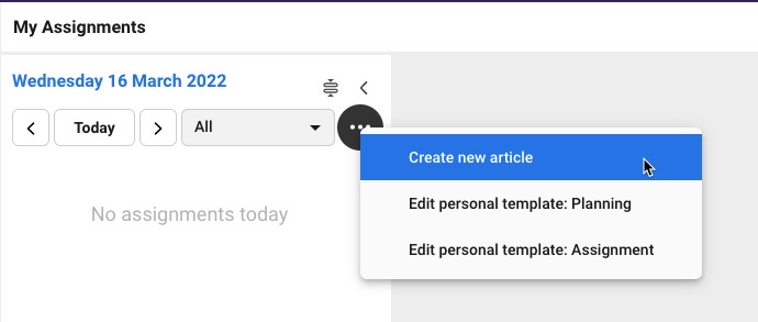 If you don't have an assignment for the article, you use the three dot in top of My assignment.&#x20;