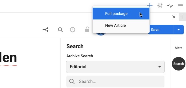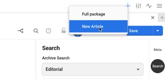 If you only want to create a new article, you use New article.