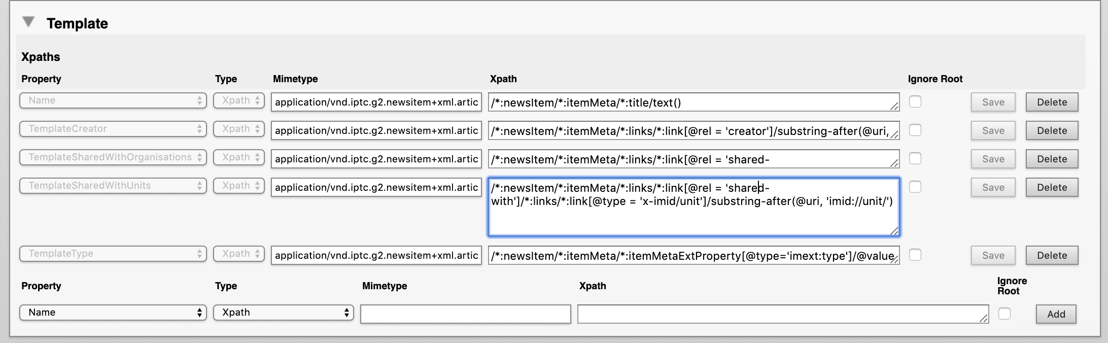 You must change the configuration of the template to suit your organisation and your unit. The actual sharing is done here for the unit in the same way as other objects created in Naviga Creation Tools.