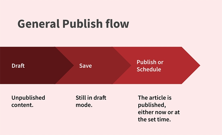 The publish flow generally sets off with a draft version of an article. After that the author adds content and saves the article and it is still in a draft state.