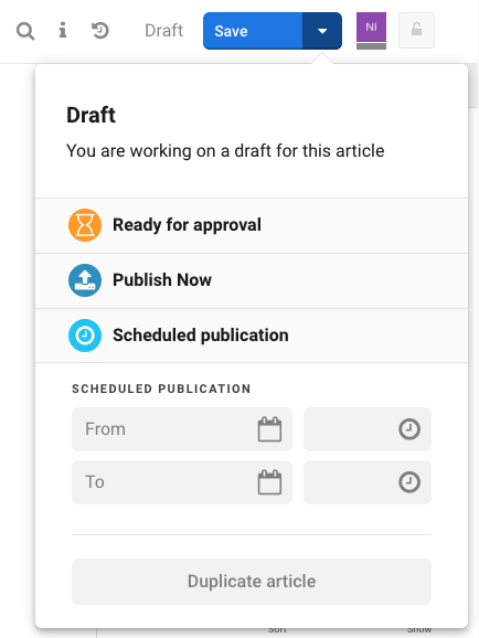 However it can also be so that the editor wants to wait with this article and decides to schedule the publishing instead. In that scenario the article is not published at first, but later when the time that is set occurs. This is a common very basic publish workflow described in common words.
