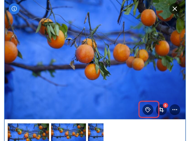If your image misses required metadata, you see this both on the image and on the image icon in the bottom bar.