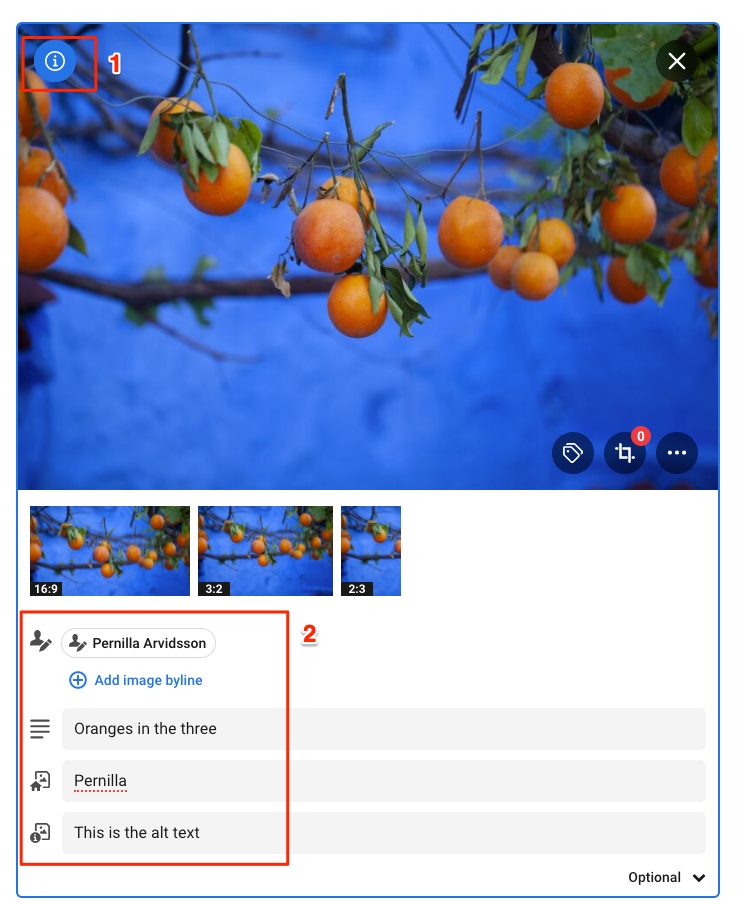 If you want to edit the metadata of the image you can do so. You can choose to change only for this article, or the metadata on the image in archive.